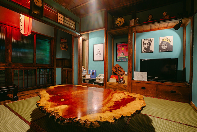 二階のお座敷は、築百年の古民家ならではの温もりが息づく特別な空間。磨き上げられた一枚板の座卓と、やわらかな灯りが心を包み込みます。ご家族やご友人との語らいに、ゆったりとした時間をお過ごしください。