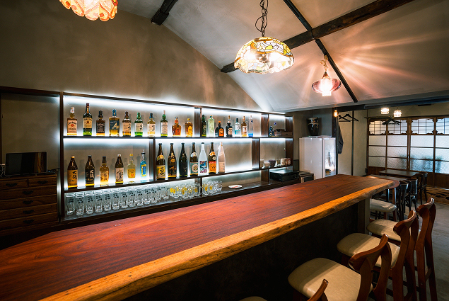 木製のカウンターが、しっとりとした時間を演出する特等席。目の前には季節ごとに選りすぐった。日本酒や焼酎、ウイスキーなど、全国各地の銘酒を豊富に取り揃えました。おひとりで静かに、または大切な方と語らいながら。