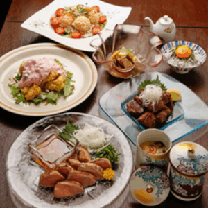 ①マグロの南蛮漬け②もつ鍋 ③アテ3種④〆の麺⑤デザート ※120分飲み放題付き(90分L.O.)お席2は時間制となります。※コースの内容は変更する場合がございます。